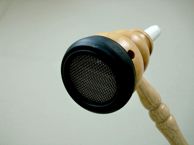白い部分が棒灸本体で、木の部分は持ち手とカバー。棒灸の部分の長さを調節して肌との距離を合わせ、体を適度に温めます。