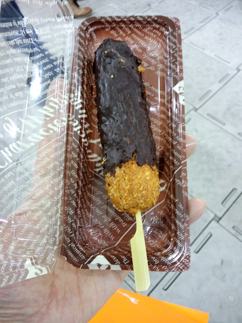 串カツ型のスイーツ。意外とずっしりしていて食べ応えがありました。