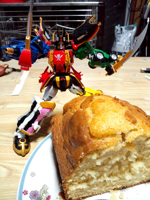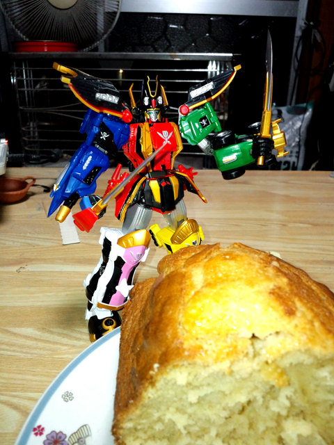 パウンドケーキはゴーカイオーさんに切り分けてもらいました。