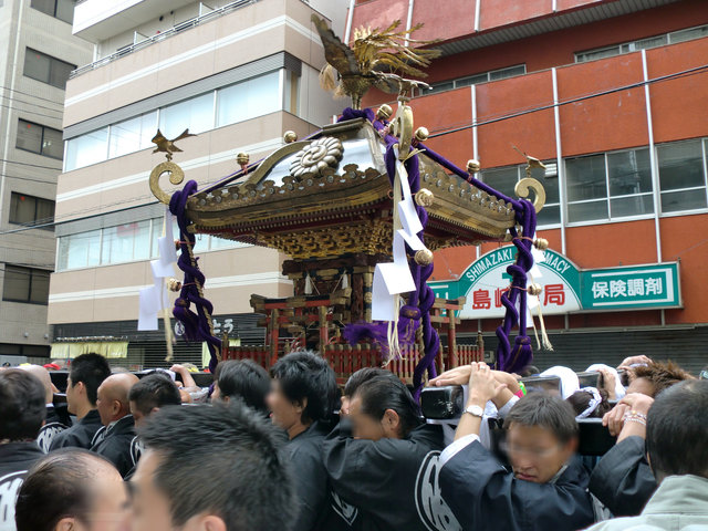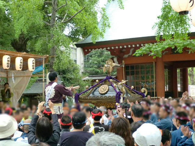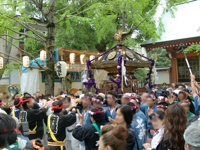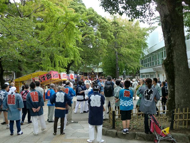 神社に着いたのは8時40分頃。担ぎ手と観客が既にたくさん集まっていました。