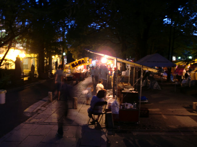 夜の屋台。お囃子の音を聞きながら食する屋台飯は旨かったです。