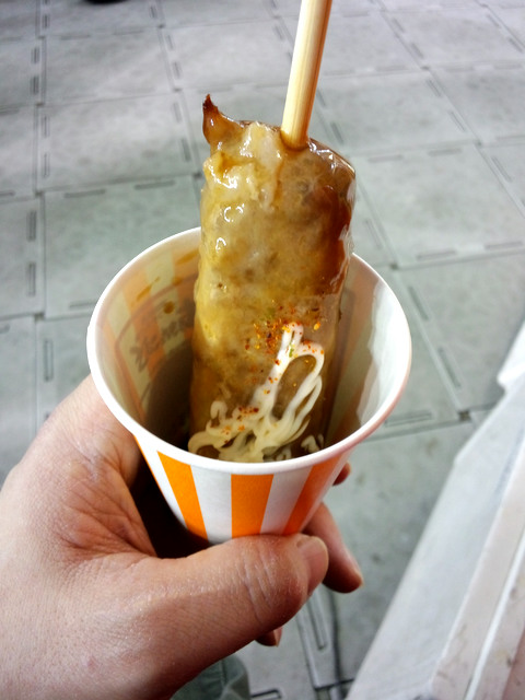 どこのだったか忘れた・・・豚とネギが交互に刺さってます。ネギがちょっと固かったけど豚は美味しかったです。