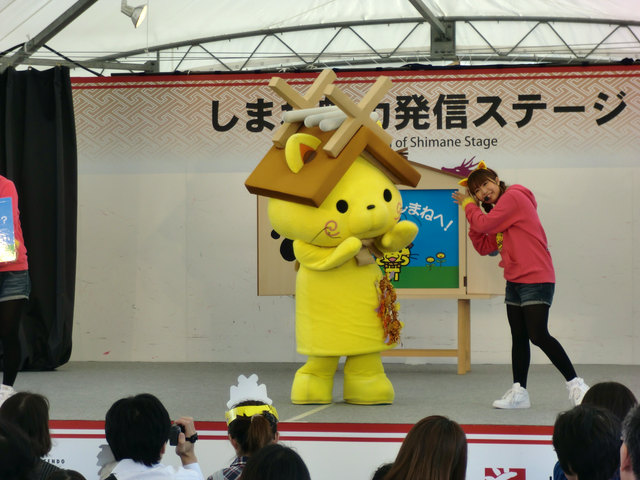 食べ物屋台の隣には「しまね魅力発信ステージ」があり、地元団体の郷土芸能披露やしまねっこのステージが開催されていました。