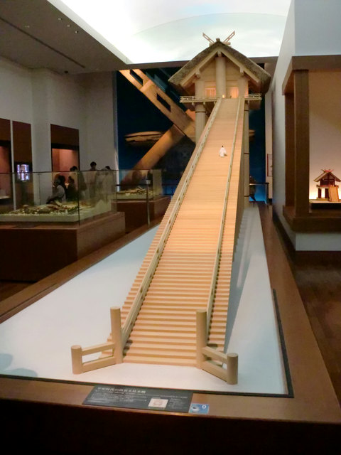 これは昔の出雲大社の再現モデル。地上48mもの高さがあったそうです。何という技術力。