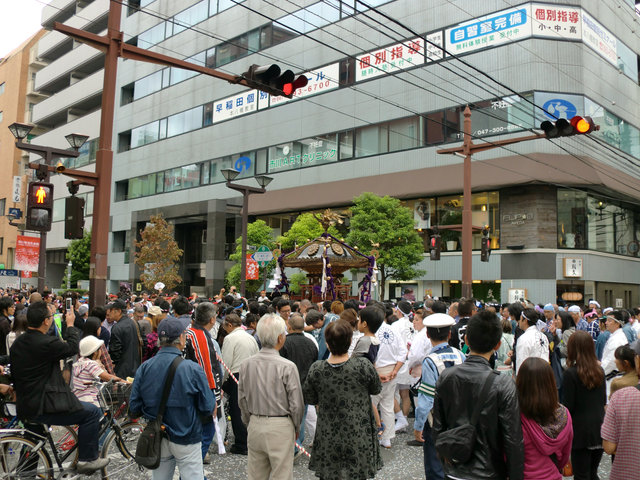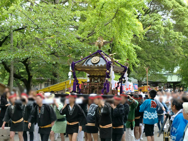 神社に着いたのは8時40分頃。担ぎ手と観客が既にたくさん集まっていました。