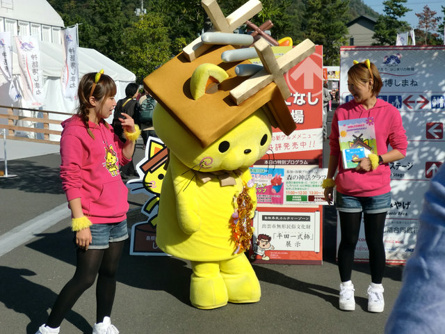 空港ではしまねっこと「秘密結社鷹の爪団」の吉田くんがお出迎え。
